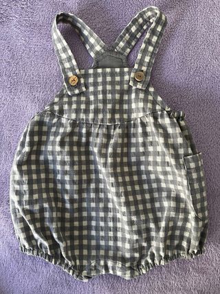 Peto de bebé de Zara con estampado de cuadros verdes. - Talla 3-6 meses. - Diseño con tirantes y botones. - Bolsillo lateral.