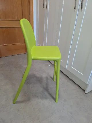 Silla de plástico de color verde, ideal para que los más pequeños coman en la cocina o jueguen. - Diseño moderno y ergonómico. - Fácil de limpiar.