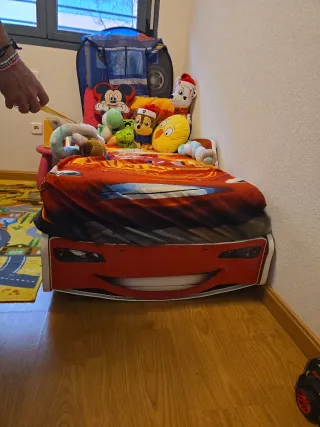 Divertida cama infantil con diseño de Rayo McQueen. - Estructura resistente. - Diseño inspirado en el personaje de Cars. - Incluye peluches de Mickey, Yoshi, Chase y Marshall.