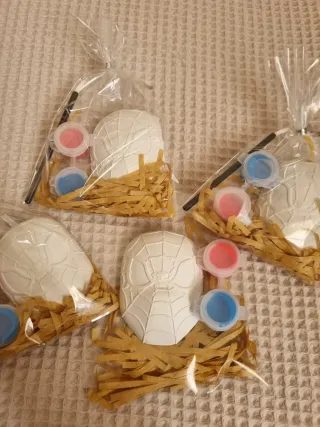 Kit de manualidades para niños con temática de Spiderman. Incluye todo lo necesario para crear tu propia máscara. - Máscara de Spiderman en blanco para decorar. - Pincel incluido. - Pinturas - Precio por unidad 1,20 - Comprando 20 o más 1 euro