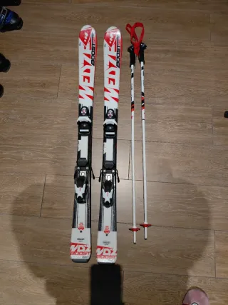 Conjunto de esquís y bastones Wedze Boost Team, ideales para jóvenes esquiadores. - Esquís con fijaciones. - Bastones de esquí.