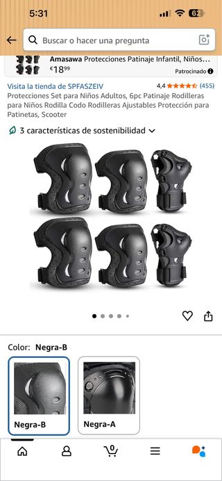 Set de protecciones para patinaje, incluye rodilleras y coderas. - 6 piezas en total. - Ajustables para niños y adultos. - Color negro.