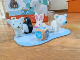 Juego de mesa cooperativo para niños. - Incluye tablero, figuras de animales y dado. - Diseñado para fomentar la cooperación entre jugadores. - Ilustraciones coloridas y temáticas de animales árticos.