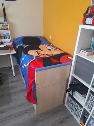 Se vende por mudanza y reforma: Habitación infantil completa, funcional y en perfecto estado. Incluye cama litera (superior 1 x 2 m e inferior 1 x 2,30 m con canapé abatible), cajoneras amplias y cajón extraíble en cabecero. Zona de estudio integrada con mesa práctica. Módulos de almacenaje: estantería superior (2,03 m ancho total), una individual (30 x 100cm)y otra doble de pared (31 x82x62). Acabados en madera, rosa y blanco. Gran capacidad: 6 gabetas y 4 cajones.. Precio: 1.200 €