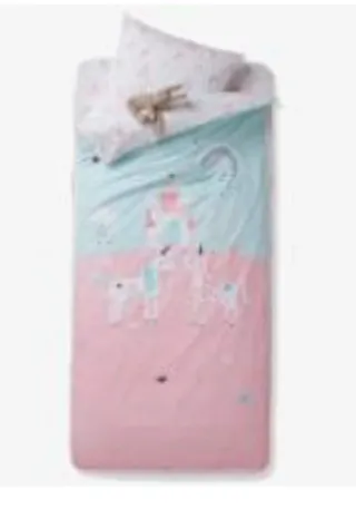 Funda nórdica con un bonito diseño de unicornios y arcoíris, perfecta para una habitación infantil. - Diseño dividido en dos colores: rosa y turquesa. - Estampado de unicornios y detalles de estrellas. "Fácil de arropar" 90 x 1,90 cm