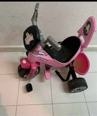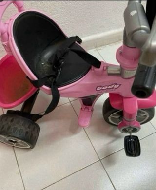 Triciclo de color rosa, ideal para los más pequeños. - Asiento cómodo. - Manillar con puños. - Respaldo. - Cesta trasera.