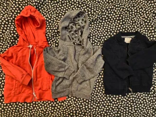 1 chaqueta chándal rojo de Lefties 18-24m 92cm (con nombre pintado debajo de la marca) 1 chaqueta chándal gris de primark 18-24m 92cm 1 cardigan de punto azul marino de Zara 2-3año 98cm