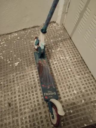 Patinete con diseño de Frozen II, ideal para los más pequeños. - Manillar ajustable en altura. - Ruedas resistentes para un deslizamiento suave. - Plataforma decorada con personajes de la película.