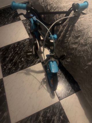 Bicicleta infantil de color azul, ideal para los más pequeños. - Manillar con puños de goma. - Ruedines de apoyo. - Frenos manuales.