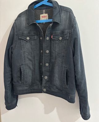 Cazadora vaquera Levi's para niños, con forro interior cálido. - Diseño clásico de cazadora vaquera. - Color gris oscuro. - Cierre de botones. - Bolsillos frontales con solapa. -Talla 12