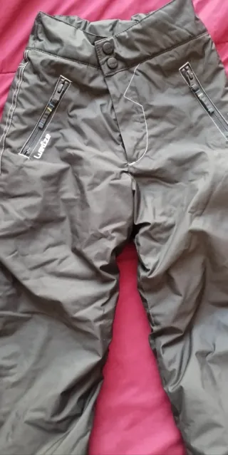 Ajustable tanto en tirantes como en la cintura , por lo que vale de los 2 años 4 años. - Bolsillos laterales con cremallera. - Puños elásticos en los tobillos. Tiene un poquito desgastado el bajo y alguna costura, pero esta perfecto, es impermeable e ideal para ir a la nieve con niños.