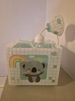 Lámpara de techo infantil con un adorable diseño de koala marca Dalber. Perfecta para habitaciones de niños. - Estampado de koala con arcoíris. - Base y detalles en color verde. - Diseño con cuadros y nubes. La Lámpara De Techo Koala ofrece un diseño de bonitos koalas que le aportará un toque muy divertido a la habitación de tu pequeña/o. Esta lámpara de techo infantil es ideal para ponerle luz y aportarle una decoración divertida a la habitación de los más pequeños de casa.