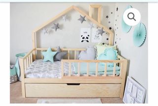 Cama estilo Montessori para habitación infantil, tamaño 90x190 cm. Se encuentra en buen estado. - Estructura de madera. - Diseño bajo para facilitar el acceso.
