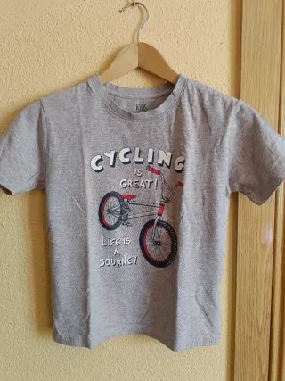 Camiseta gris para niño con estampado de bicicleta y texto. - Diseño Cycling is Great. - Life is a Journey en la parte inferior. - Cuello redondo y manga corta. - Nueva - Talla 9-10 años