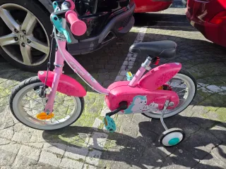 Bicicleta infantil de color rosa con diseño de unicornios. Ideal para los más pequeños. - Ruedines incluidos. - Frenos adaptados para niños. - Diseño divertido y colorido.