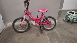 Bicicleta infantil de color rosa con ruedas de 14 pulgadas. - Cuadro de bicicleta. - Sillín. - Manillar. - Pedales. - Ruedas.