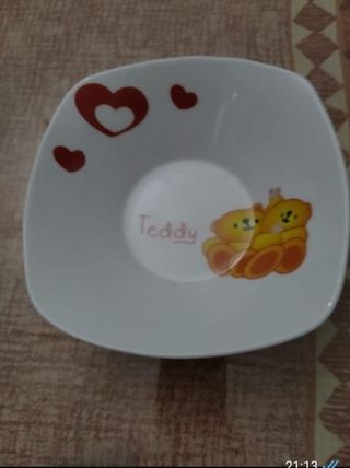 Conjunto de taza y bol con diseño de ositos Teddy, ideal para los más pequeños. - Taza con asa. - Decoración de ositos y corazones.