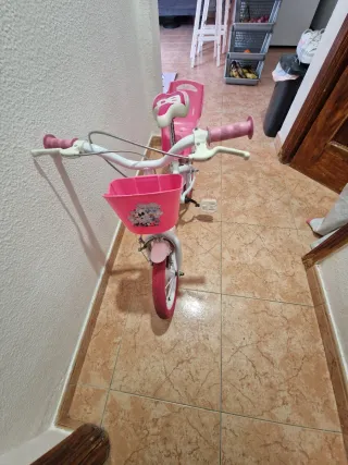 Se vende linda bicicleta para niña, ideal para los primeros paseos. - Color rosa vibrante. - Cesta delantera con diseño. - Asiento y manillar cómodos.