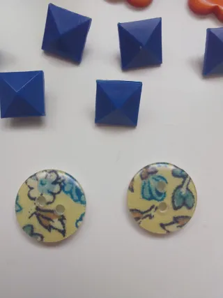 Botones de los años 80 4 unidades forma flor 2cm 6 unidades cuadrados 0.5cm 2unidades redondos con estampado flores 1cm Precio por los 12 botones #botonesflor #botonesaños80 #botonesazueles #flores #flor #naranja #azul, beige #boton #botones #botoneinfantiles #botonesdecorativos