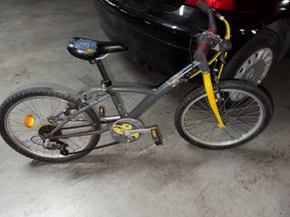 Bicicleta infantil gris y amarilla