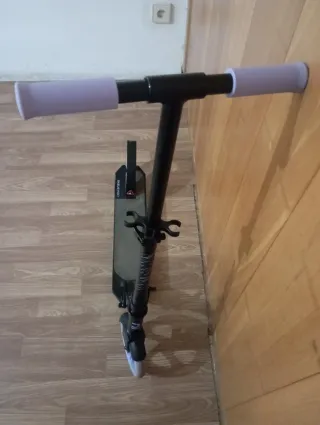 Patinete en buen estado, ideal para paseos. - Color negro - Ruedas lilas