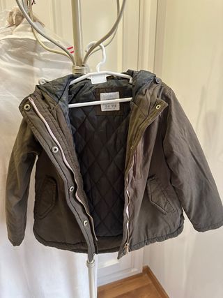Chaqueta de abrigo para niños, ideal para el frío. - Color verde militar. - Interior acolchado. - Cierre de cremallera y botones. - Con capucha. Usada solo en dos ocasiones. Envio maximo en 24h