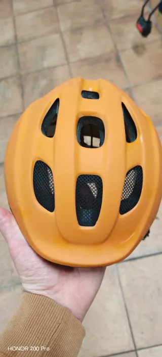 Casco de protección para bicicletas, ideal para niñ@s. Su color naranja lo hace muy visible. - Diseño con múltiples ventilaciones. - Revestimiento interior de malla.
