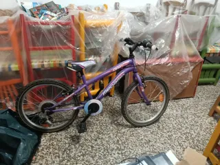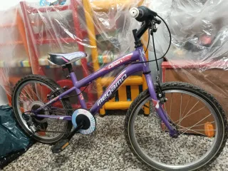 Bicicleta infantil de color morado, ideal para los más pequeños. - Cuadro de metal resistente. - Ruedas de 20 pulgadas. - Sillín ajustable.
