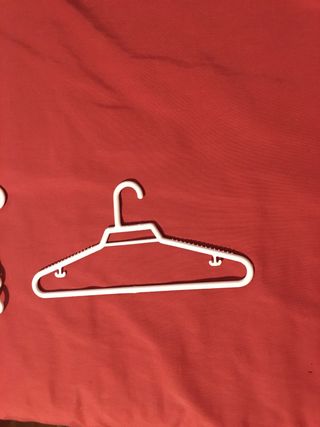 Lote de 12 perchas diseñadas para ropa infantil. Son ligeras y resistentes, ideales para mantener el orden en el armario. - Fabricadas en plástico duradero. - Color blanco clásico. - Diseño pensado para prendas de niños.