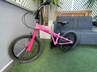 Bicicleta infantil Monty modelo 104 con ruedas de 18 pulgadas. - Color rosa. - Modelo BMX, no es un juguete. - Aluminio ligero. - Muy cómoda y con posibilidad de ponerle Ruedines. - Diseño pensado para los más pequeños. Ideal para aprender a montar en bici. - Válida para niños de hasta 9-10 años. En tienda 280€.