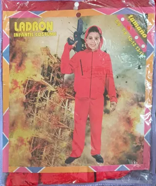 Disfraz infantil inspirado en la popular serie La Casa de Papel. - Mono rojo con capucha. - Talla 7-9 años. - Usado una tarde