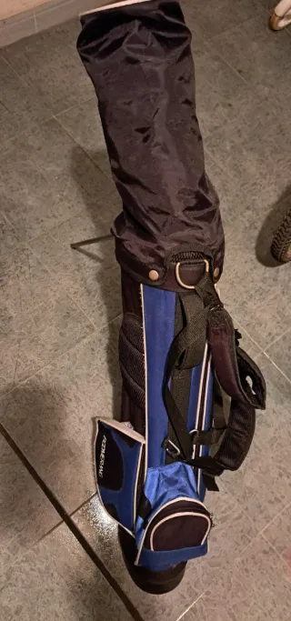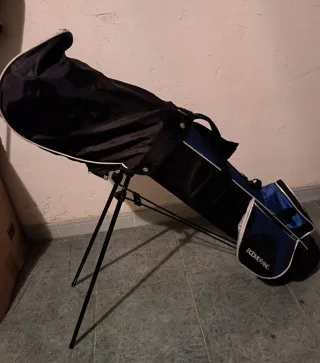 Juego de palos de golf infantil de la marca Boomerang. Incluye bolsa trípode color negro y azul, compartimentos para palos y asa de transporte.