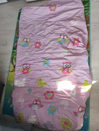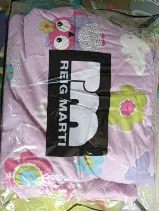 Edredón infantil con un bonito diseño de búhos y flores, ideal para cama de 90 cm. La marca es Reig Marti. Es ajustable, para meter por dentro, ideal para cama nido o cama con canapé.