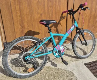 Bicicleta infantil de color azul con detalles en rosa y un divertido diseño. - Ruedas de 20 pulgadas. - Sillín ajustable. -5 marchas