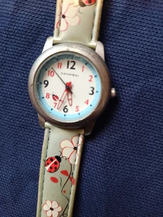 Reloj de pulsera con un diseño infantil y divertido. Sin pilas está como aparece en las fotos - Correa con estampado de mariquitas y flores. - Esfera con números y detalles de mariquitas.