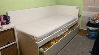 Estructura de diván con cama nido integrada, ideal para optimizar el espacio. - Medidas de 80x200 cm. - Acabado en color blanco. Se vende montada... habría que quedar para desmontar... NO ENVÍOS... Zona Arganzuela (Madrid)