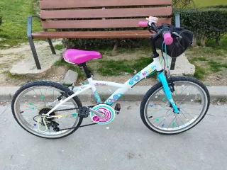 Bicicleta infantil Btwin de 20 pulgadas - Funcionando y en perfecto estado. - Color blanco con detalles en azul y rosa. - Sillín rosa.