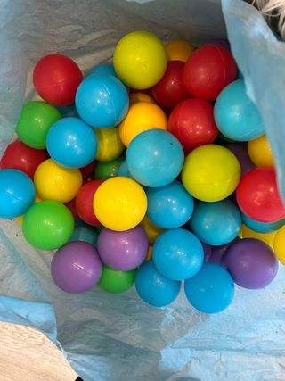 Lote de 190 bolas de colores para parque infantil o piscina de bolas. Son de plástico resistente y alegres tonalidades. - Bolas de colores variados: rojo, azul, amarillo, verde y morado. - Material: Plástico. - Ideales para juegos y diversión.