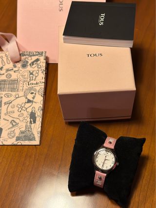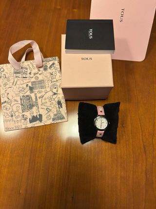 Precioso reloj de la marca Tous, ideal para comunión. Nuevo, puesto una hora. Precio en factura 95€. - Diseño infantil. - Correa de piel con detalles. - Caja original incluida. -Sumergible. -Factura del corte inglés incluida.