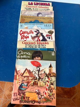Colección de discos de vinilo con cuentos y canciones infantiles. - La Lechera - Manbrú se fue a la guerra - Canciones Infantiles: Tengo una muñeca - Caperucita Roja - Heidi - Ana y la gallina - El Valiente Burrito - Ya viene la vieja gatatumba - De los Apeninos a los Andes