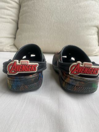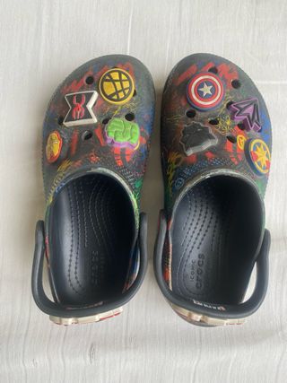 Zuecos infantiles de la marca Crocs con temática de Avengers. Talla 30-32 o C12 infantil. Presentan un diseño multicolor con varios personajes. - Diseño con personajes de Avengers. - Estilo zueco. - Tira trasera para mayor sujeción.