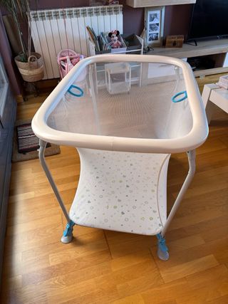 Parque infantil de la marca CAM, ideal para el descanso y juego de los más pequeños. + Estructura metálica con laterales de malla. + Colchoneta con estampado infantil lavable. +Plegable para facilitar su almacenamiento. +Precio 195€ nuevo.