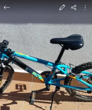 Bicicleta para niños en color azul con detalles naranjas y amarillos. Sillín gel amortiguación delatera Es una buena bici marca Qüer, costó 250 euros aporto factura. Frenos muy buenos - Cuadro de aluminio - Ruedas todoterreno. - Sillín ajustable.