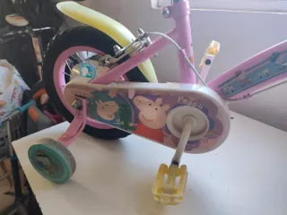 Bicicleta infantil con diseño de Peppa Pig, ideal para los más pequeños. Cuenta con ruedines para facilitar el aprendizaje. - Color principal: rosa. - Diseño con personajes de Peppa Pig. - Ruedines incluidos.