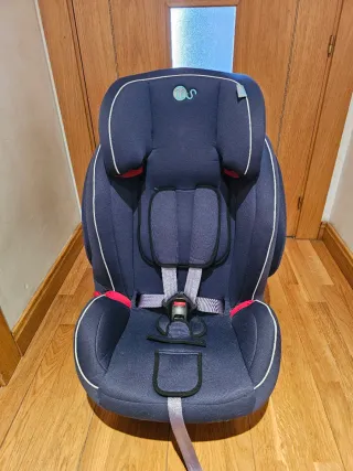 Silla de seguridad para coche en color azul marino, con detalles en blanco y rojo. - Fijacion por cinturon de seguridad. - Diseño acolchado para mayor comodidad. - Sistema de arnés. - Reposacabezas ajustable.