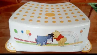 Escalón de plástico con diseño de Winnie the Pooh y sus amigos. - Ilustraciones de Winnie the Pooh y Igor. - Decorado con globos y arcoíris. - Superficie antideslizante con puntos amarillos.