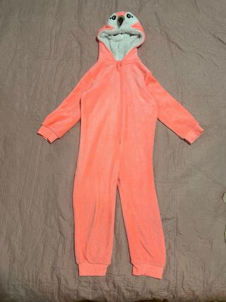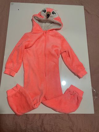 Disfraz de flamenco para niños, ideal para fiestas o para estar cómodo en casa. Es un mono completo con capucha. Talla 4/5 años 110 cm - Color rosa brillante. - Material suave y cálido. - Diseño de flamenco con detalles en la capucha.