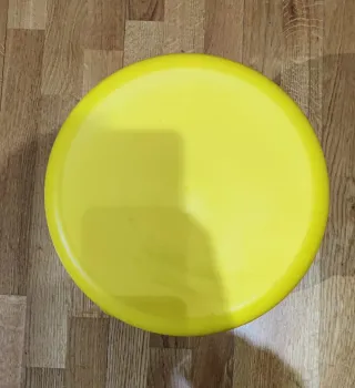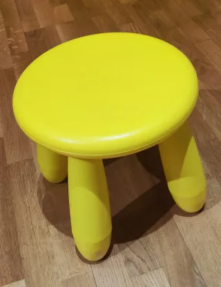 Taburete infantil Mamut de Ikea en color amarillo. Es un asiento bajo y estable, perfecto para los más pequeños. - Diseño redondeado y seguro. - Patas robustas para mayor estabilidad.