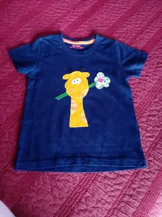 Camiseta de manga corta con un divertido diseño de jirafa. - Aplicación de jirafa hecha a mano. - Detalle de flor en la cabeza de la jirafa. - Cuello redondo.