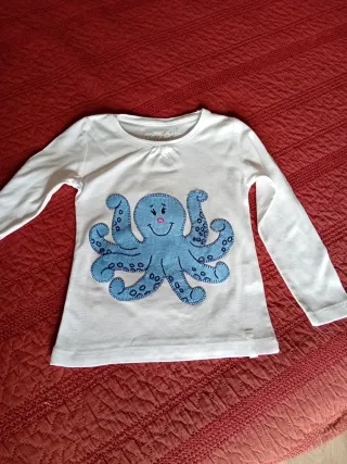Camiseta de manga larga con un divertido diseño de pulpo. - Aplicación de pulpo hecha a mano con técnica patchwork. - Detalle de ojales en los tentáculos del pulpo.